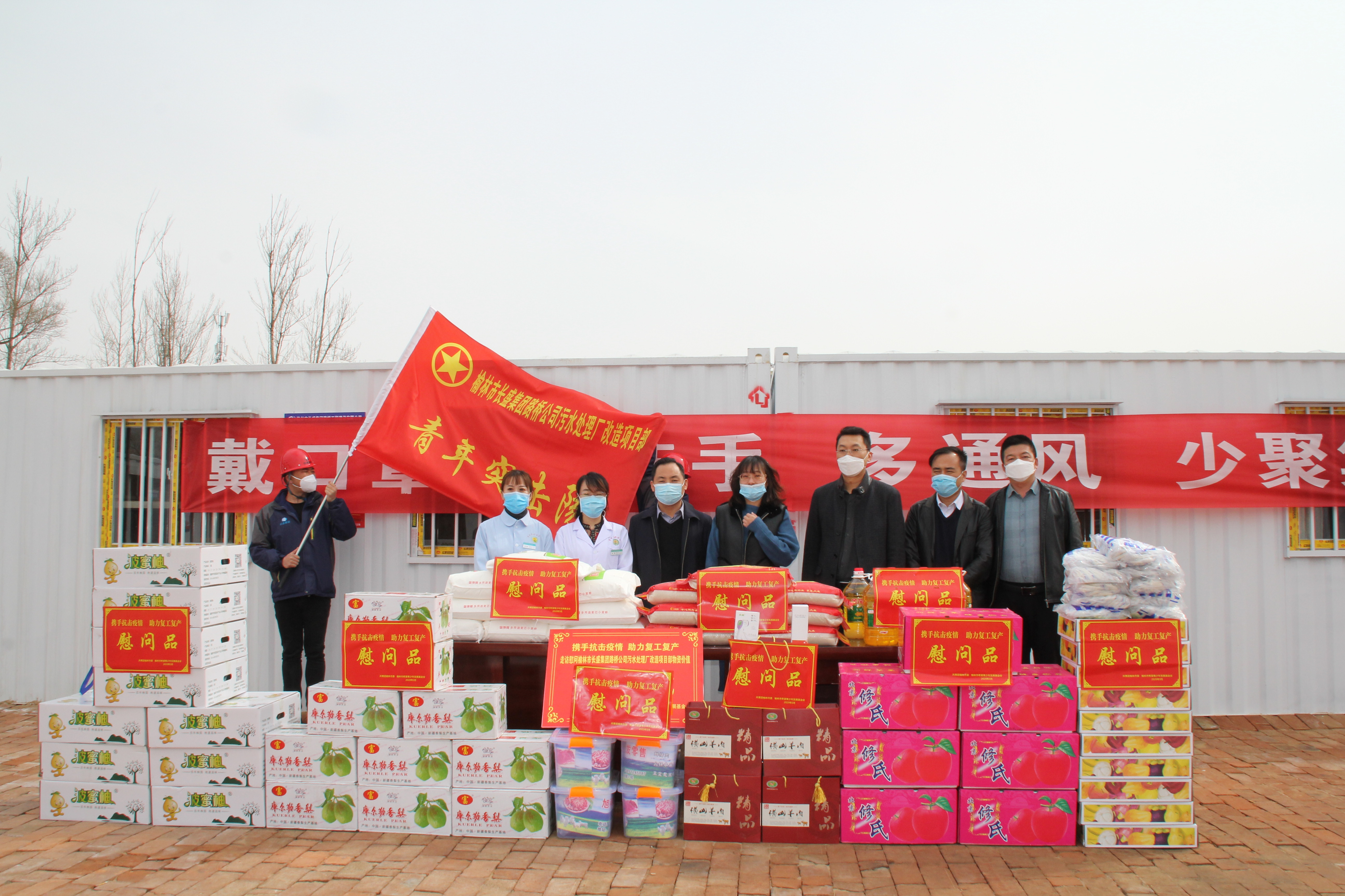 2020年-叁月 3月2日,由榆林團市委領(lǐng)導(dǎo)聯(lián)合榆林市中醫(yī)北方醫(yī)院等相關(guān)部門,走訪慰問了我公司污水處理廠提標改造項目部的一線員工,并帶來了各種防疫和生活物資。