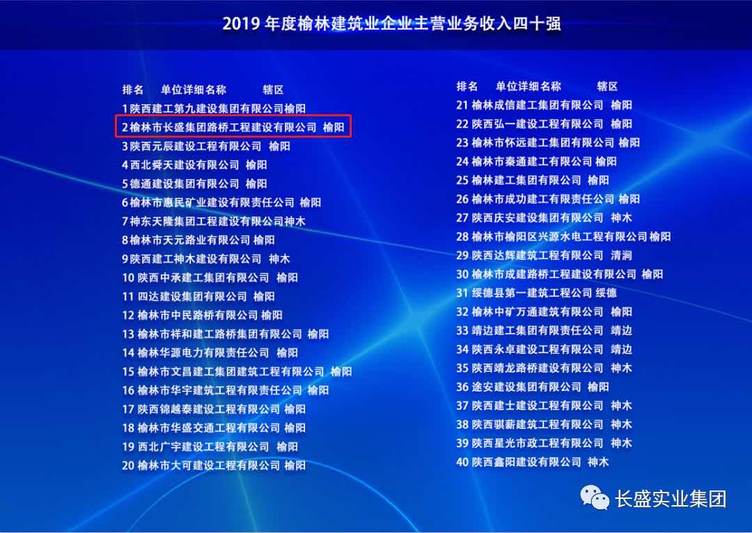 12月22日,榆林市人民政府新聞辦公室召開2019年榆林市“五上”企業(yè)新聞發(fā)布會,長盛路橋入榜建筑企業(yè)主營業(yè)務(wù)收入四十強,長盛路橋入榜民營企業(yè)主營業(yè)務(wù)收入百強,長盛地產(chǎn)入榜房地產(chǎn)開發(fā)經(jīng)營企業(yè)主營業(yè)務(wù)收入二十強。